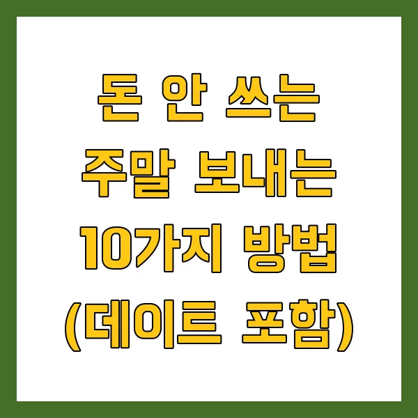 이 10가지 방법들을 통해 돈은 절약하면서도 즐겁고 의미 있는 주말을 보낼 수 있습니다. 중요한 것은 돈이 아니라 서로에게 집중하고 함께 시간을 보내는 것이라는 점을 기억하세요. 이번 주말, 돈 걱정 없이 사랑하는 사람과 행복한 추억을 만들어보세요!