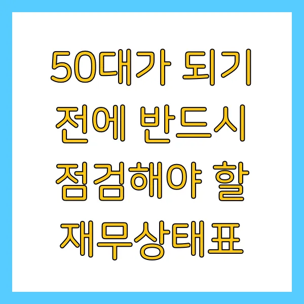 50대 이전, 지금이 바로 재무 설계의 골든타임입니다. 제시된 항목들을 꼼꼼히 점검하고, 필요한 조치를 취하여 재무적으로 건강한 미래를 설계하세요! 풍요롭고 안정적인 인생 2막을 응원합니다!